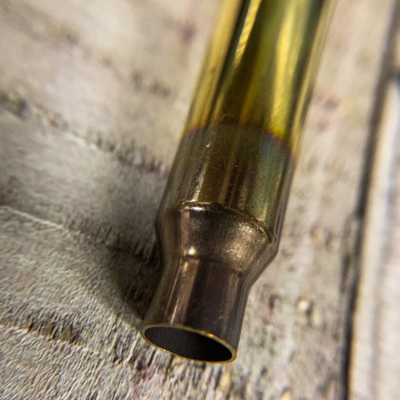 ADG brass was designed not only for consistency, but for durability. One of the ways we accomplished this was adding material to the case in specific areas to strengthen it. With the additional material, our brass is heavier than most other manufacturers brass and therefore will require lower charge weights to achieve the same pressures and velocities due to the reduced volume inside the brass. We recommend using a reputable load data source and working up from their recommended minimum starting loads. Failure to reduce charge weights established using other manufacturers brass will likely result in higher pressures and velocities while using ADG brass and may result in unsafe pressure levels.