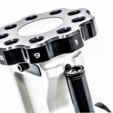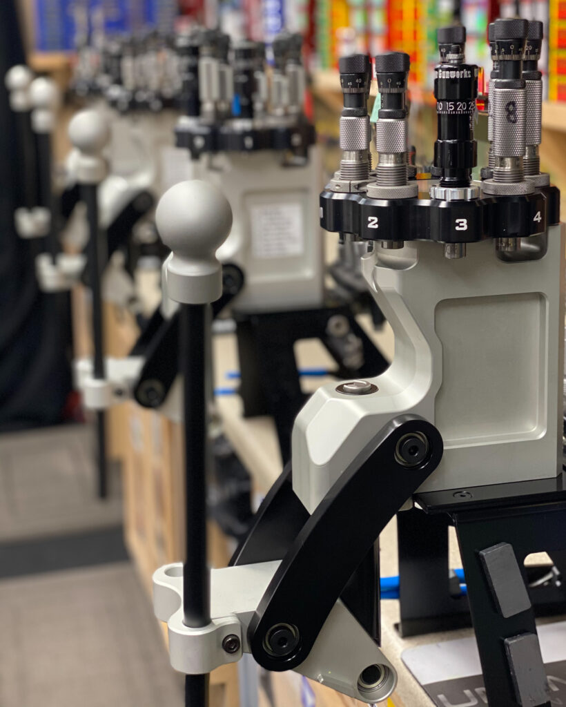 The opening in the press will allow for sizing and seating of cases up to 338LM, and will accept standard 7/8″ dies and standard shellholders (we prefer the Redding). The press CAN be used for Cheytac-class reloading, but may (depending on your die setup and bullet length) require you to “scoop” the bullet into the sizing die and down into the case before sizing.
