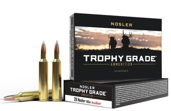 Nosler Trophy Grade™ ammunition is loaded with Nosler AccuBond® bullets. The AccuBond®’s unique white polymer tip assures accuracy and smooth chambering, while the boat-tail base at the rear of the bullet acts as a platform for large diameter mushrooms. Designed for accuracy near or far, Nosler’s Trophy Grade™ ammunition provides undeniable reliability.