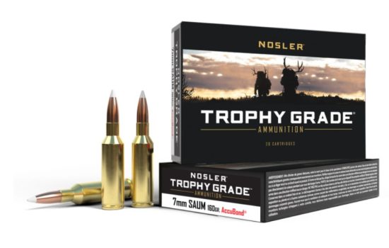 Nosler Trophy Grade™ ammunition is loaded with Nosler AccuBond® bullets. The AccuBond®’s unique white polymer tip assures accuracy and smooth chambering, while the boat-tail base at the rear of the bullet acts as a platform for large diameter mushrooms. Designed for accuracy near or far, Nosler’s Trophy Grade™ ammunition provides undeniable reliability.