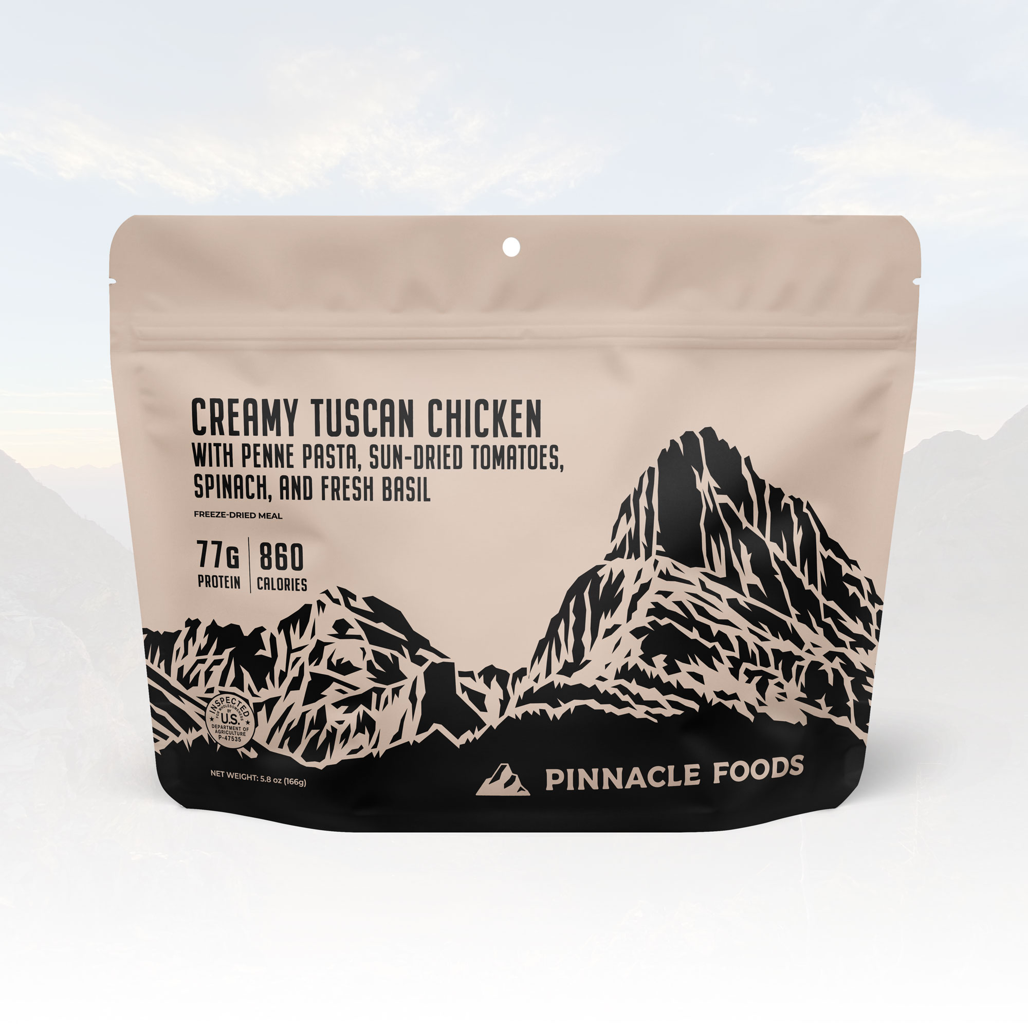 Creamy Tuscan Chicken with Penne Pasta- Roasted chicken marinated in fresh herbs and garlic with Italian Penne Rigato Pasta, organic sun-dried tomatoes and spinach mixed in a rich garlic-parmesan cream sauce and finished with fresh basil.