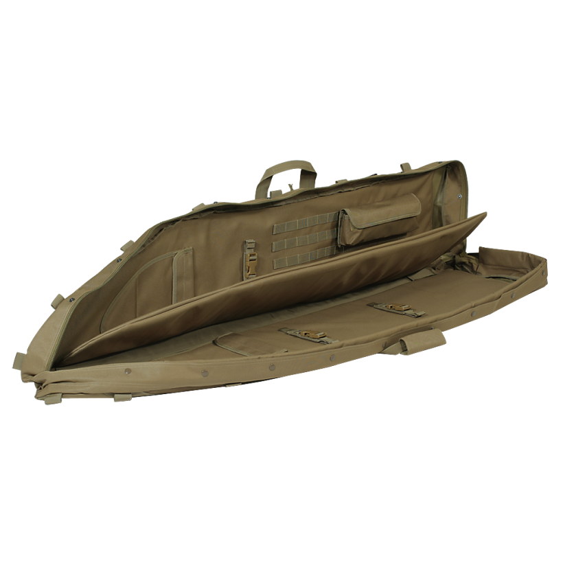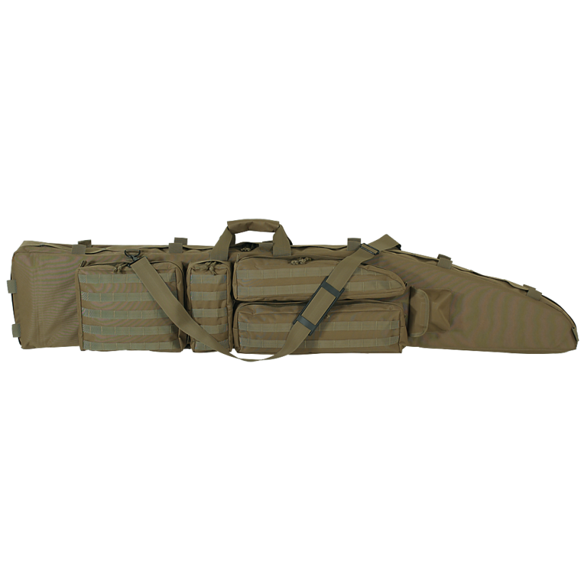 Sniper-designed to include every feature on their wish list. Constructed of rugged pack cloth with four large external pouches and silent nylon zipper pulls on every military grade self-repairing zipper.